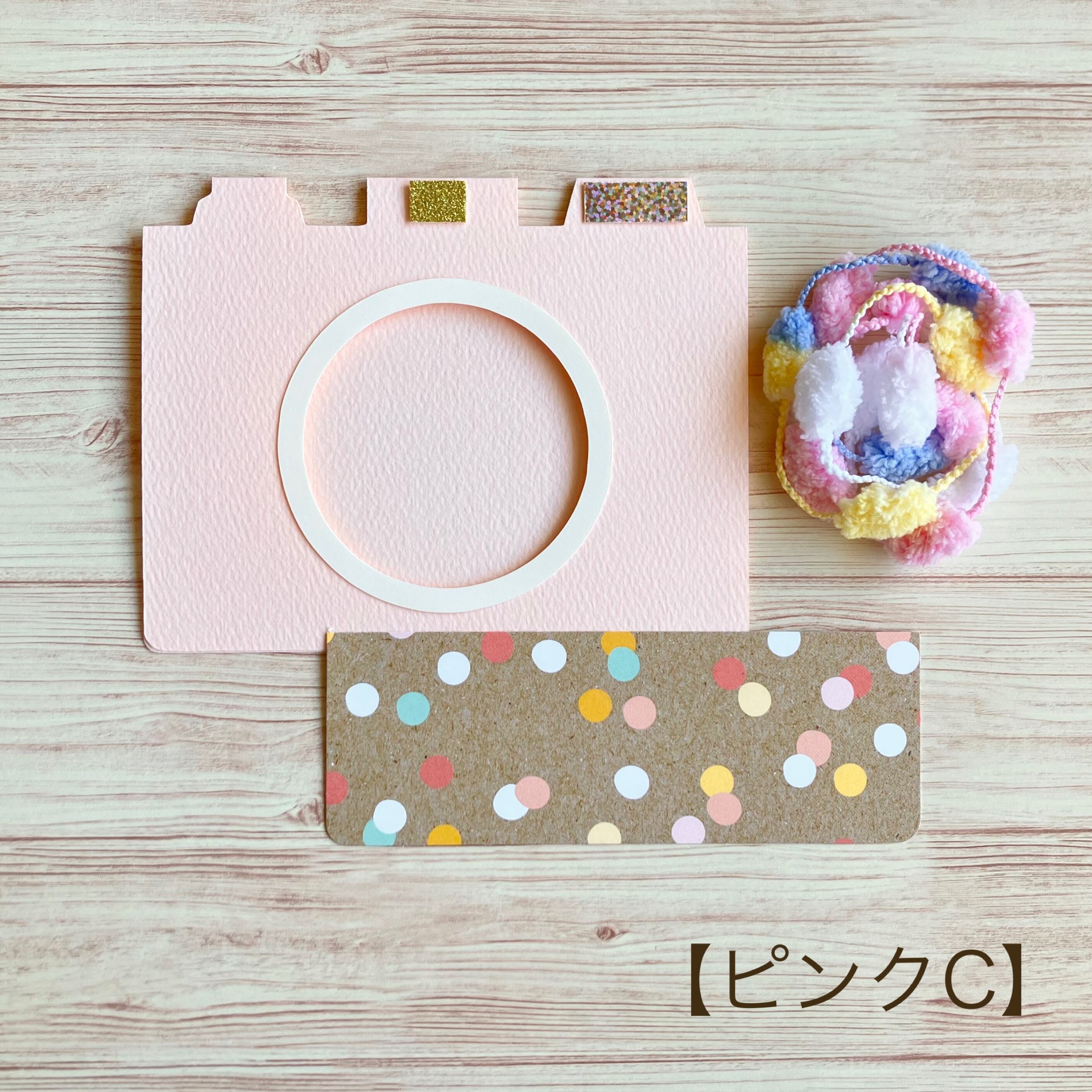写真を貼って完成するカメラ型のフォトカードが手作りできます。