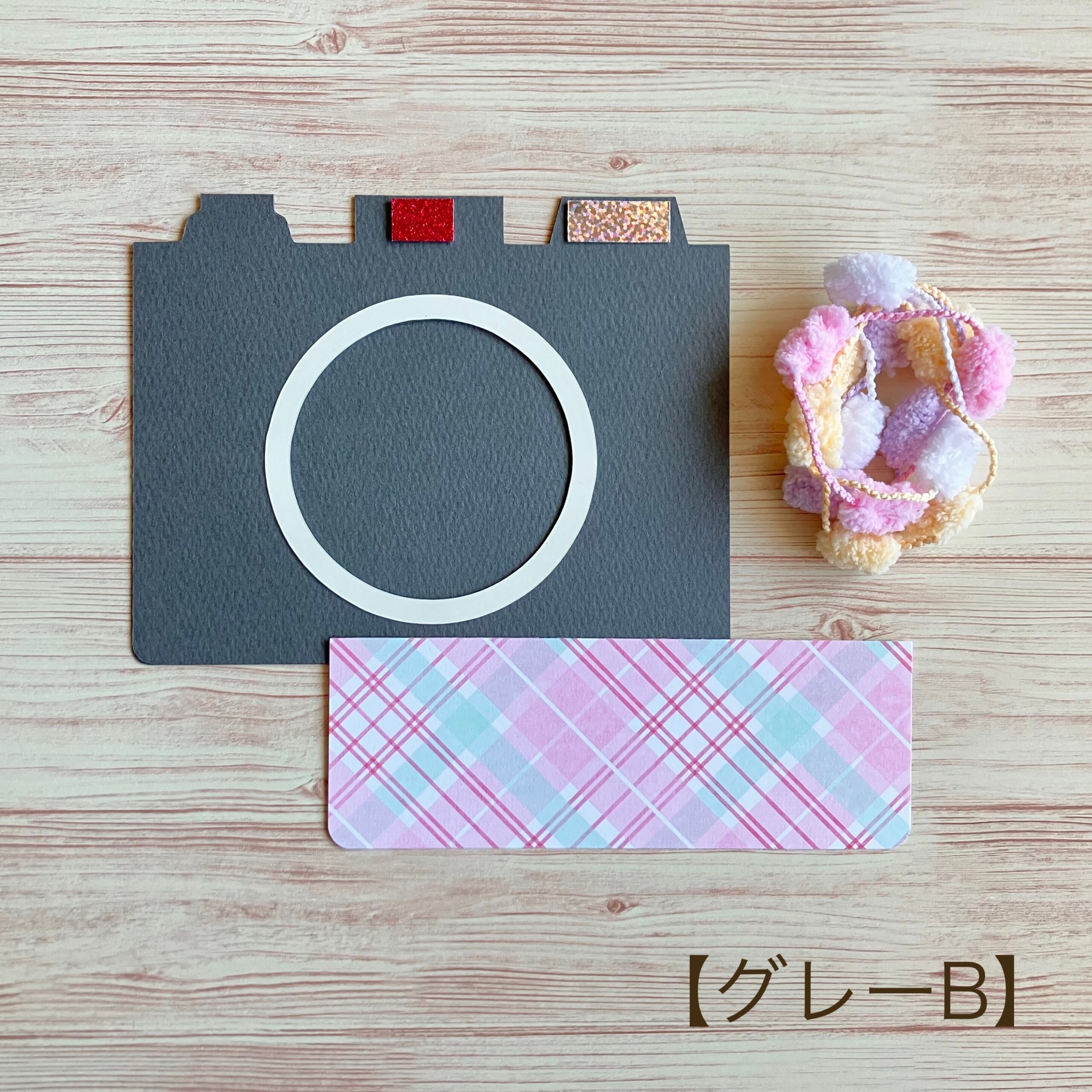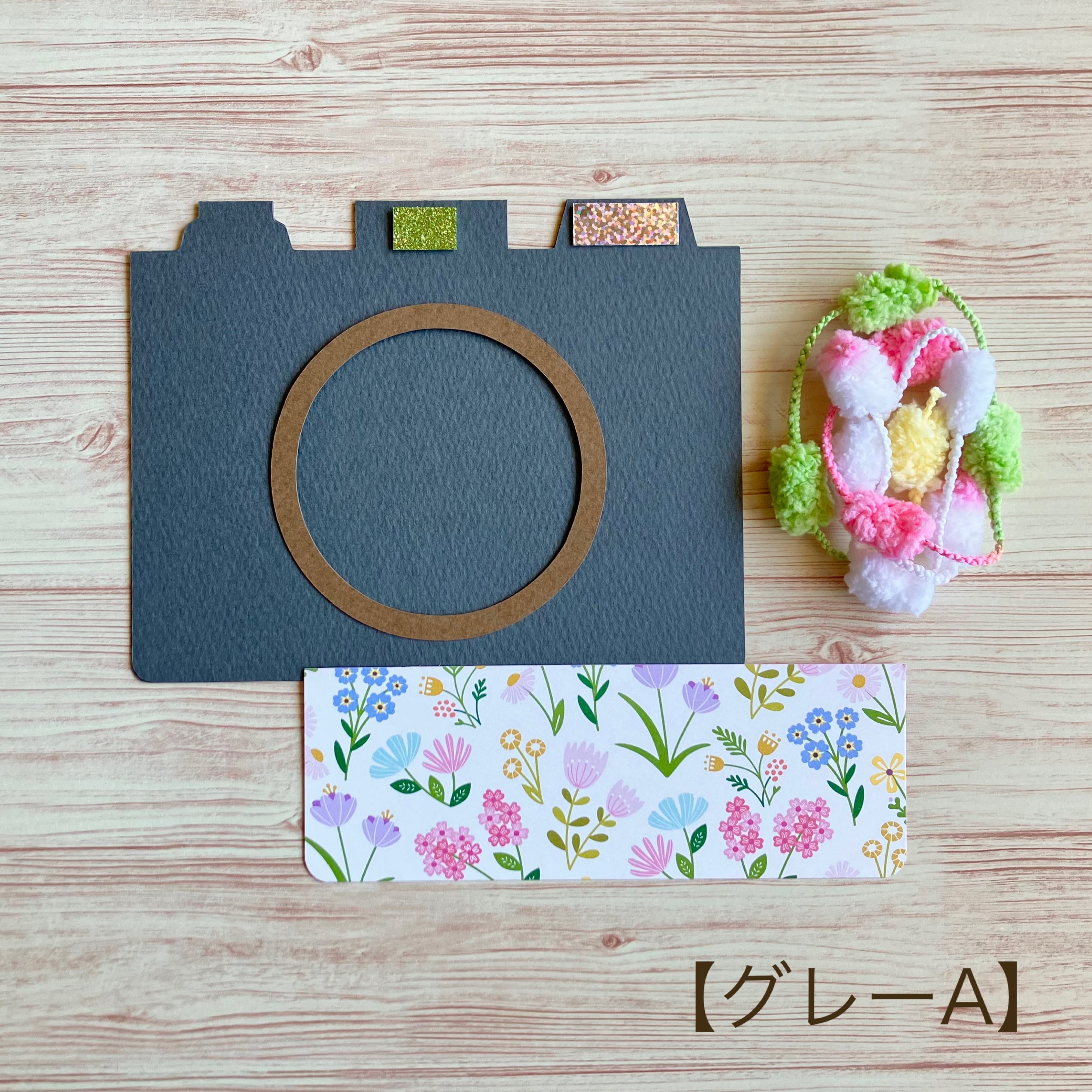 写真を貼って完成するカメラ型のフォトカードが手作りできます。